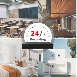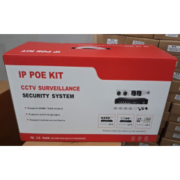4 caméras IP 5MP couleur + NVR PoE 4 canaux, microphone intégré, vision nocturne, détection de mouvement, grand angle, étanches, portée IR jusqu'à 30 mètres.