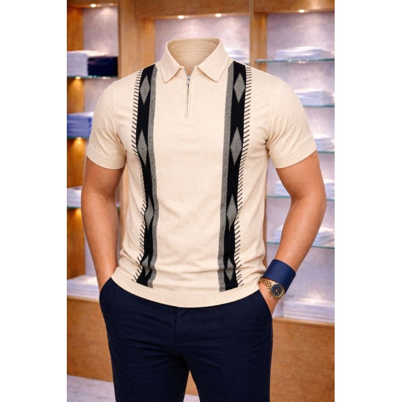Polo avec motif texturé sur le tissu, doux pour la peau, résistant et confortable à porter. Ajoute du raffinement aux tenues décontractées sans sacrifier le confort. Tissu facile d'entretien, parfait pour un usage quotidien.