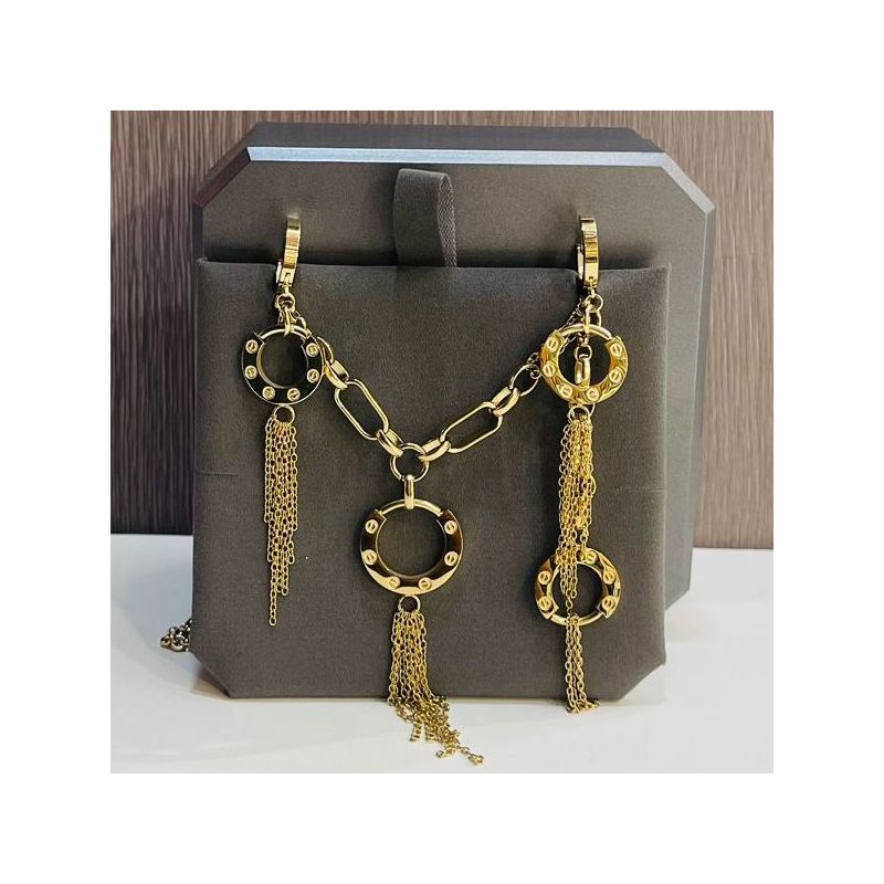 Chaîne, bracelet et boucles d’oreilles plaqués or. Bijou polyvalent pour un usage quotidien ou des occasions élégantes. Parfait comme cadeau pour une occasion spéciale !