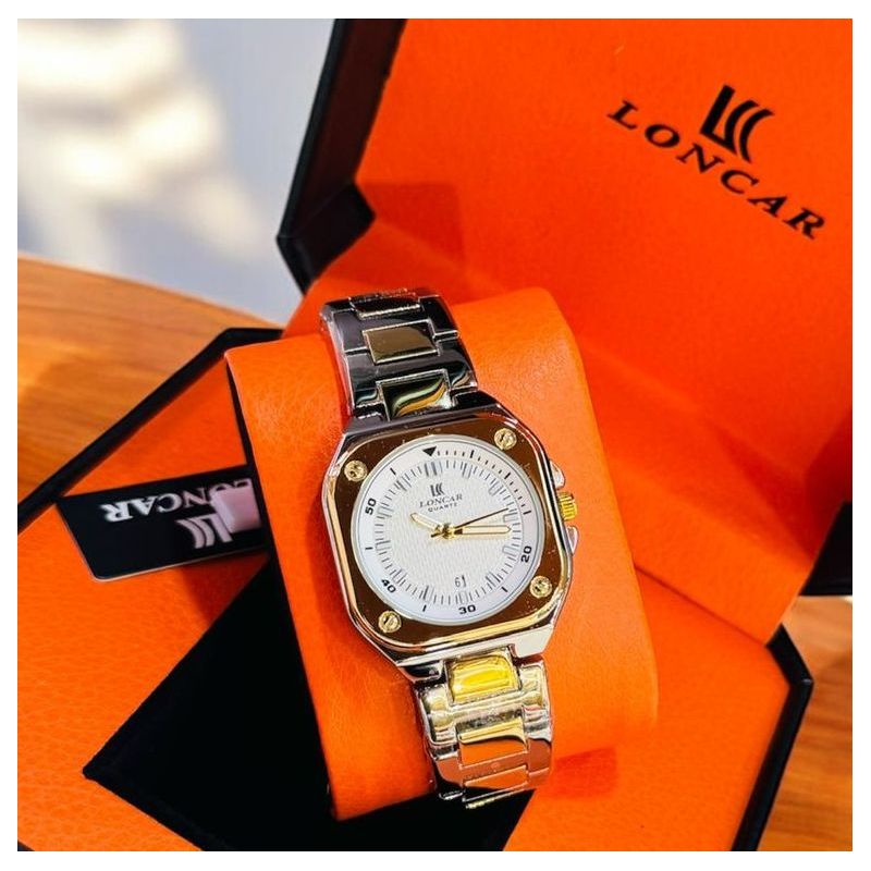 Montre à quartz étanche avec bracelet en acier inoxydable.
