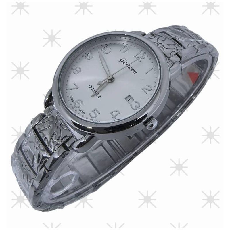 Montre à quartz étanche avec bracelet en acier inoxydable.