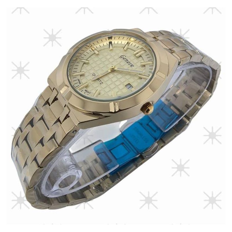 Montre à quartz étanche avec bracelet en acier inoxydable.